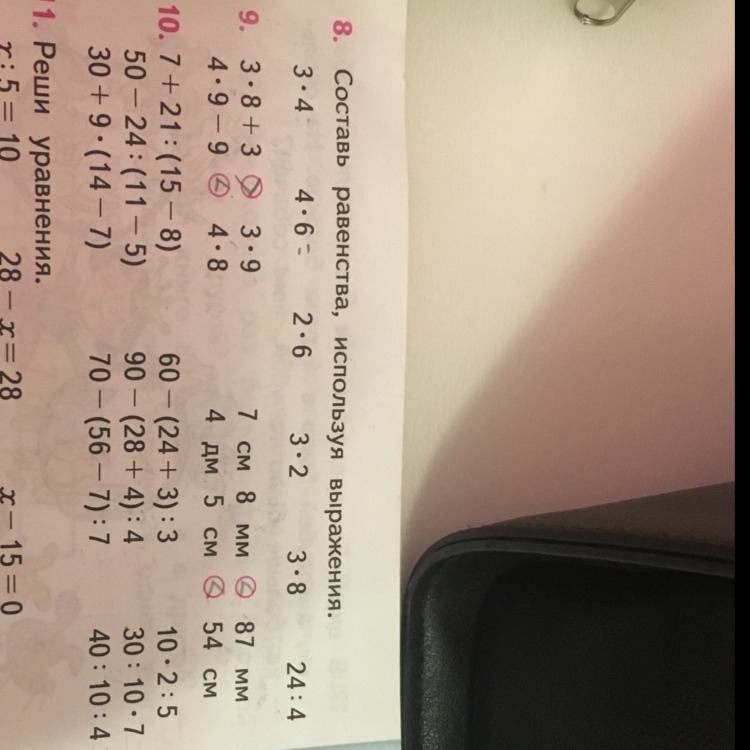 1 7+21/(15-8)=11 50-24/(11-5)=46 30+9*(14-7)=93 60-(24+3)/3=51 90-(28+4)/4=82 70-(56-7)/7=63 10*2/5=4 30/10*7=21 40/10/4=1
