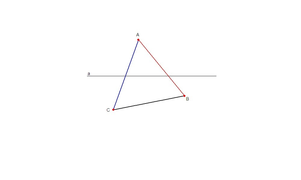 так, чтобы они не принадлежали прямой a, отрезок AC пересекал эту прямую, а отрезок BC не пересекал ее. Пересекает ли прямую a отрезок BC? Ответ объясните.