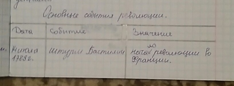 таблица "Основные события великой французской буржуазной революции". Дата ; событие ; значение