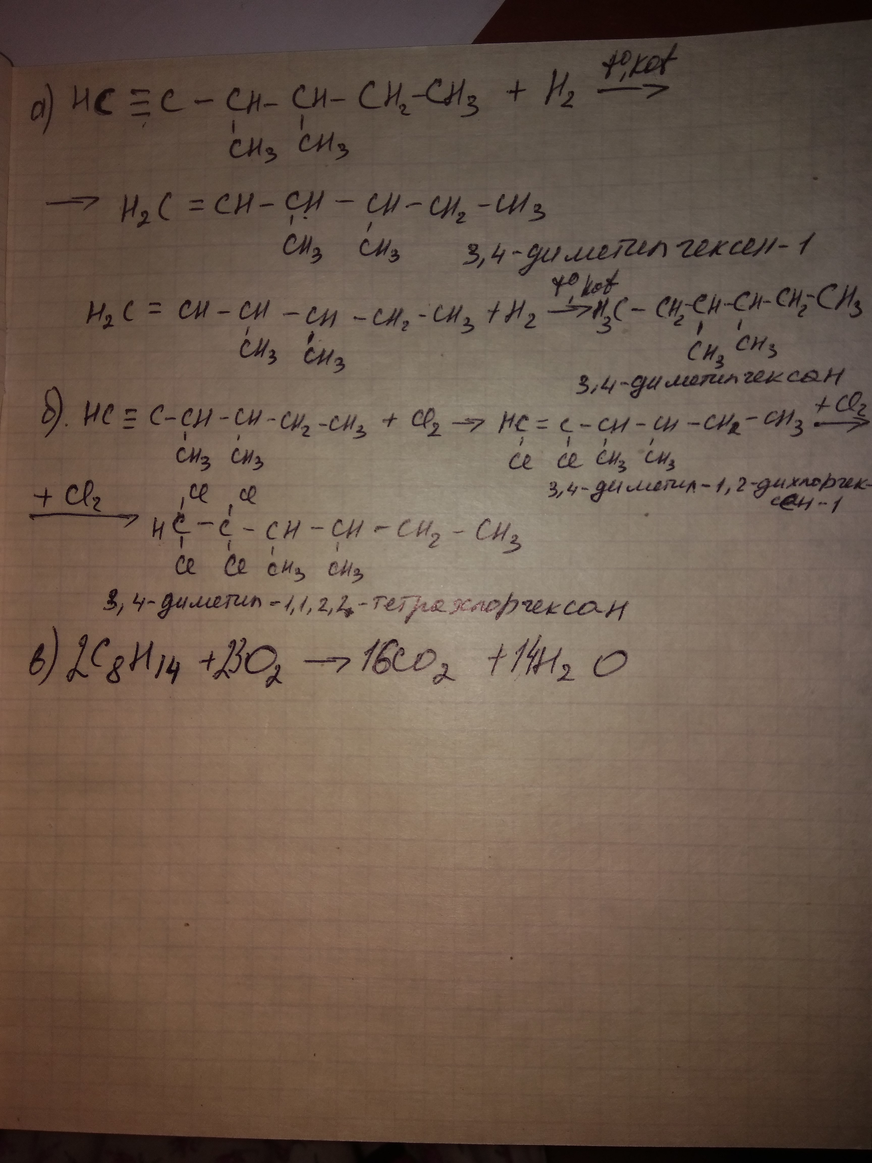 ОЧЕНЬ НУЖНО!!!!составить уравнения реакций для 3,4-диметилгексин-1 а)гидрирования
