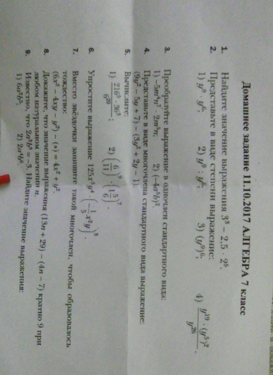 4)у³(у в 19+у в 5*2,т.е. у в 10 = у в 29;затем у в 29 вычесть у в 26=у в 3-ей степени)