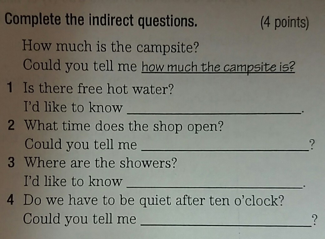 1) I'd like to know it. 2) could you tell me it. 3) I'd like to know it. 4)could you tell me it