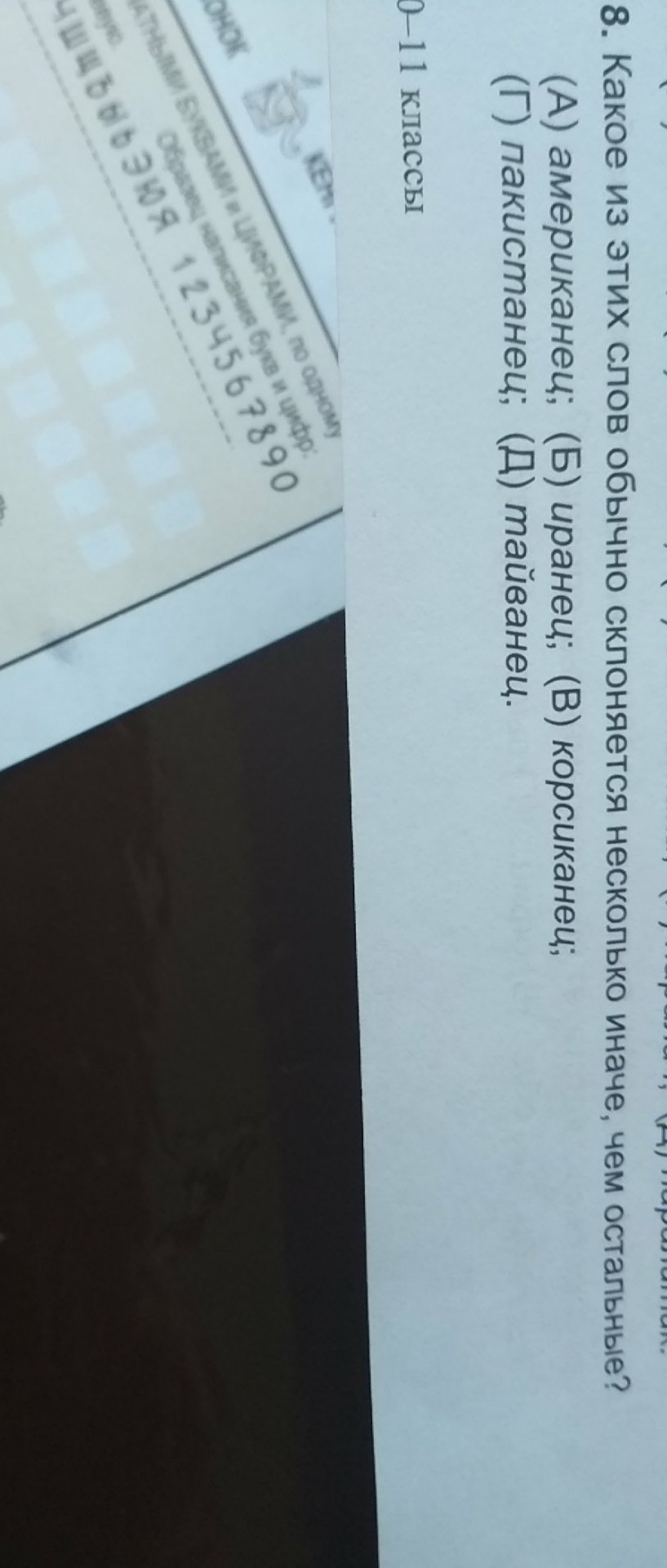 какое из этих слов обычно склоняется несколько иначе чем остальные Американец иранец корсиканец Пакистанец тайванец