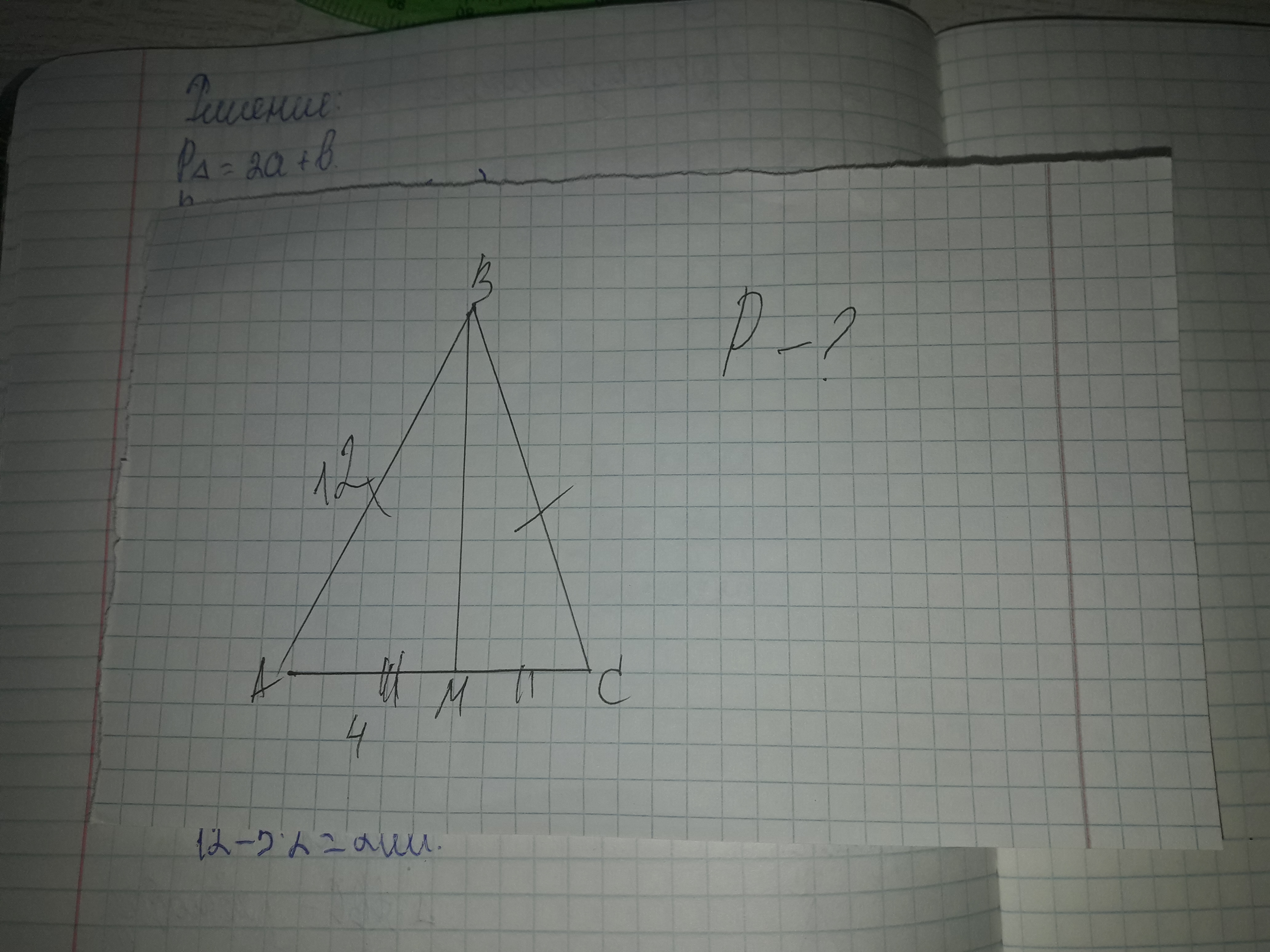 Если вам нужно найти периметр, то, т.к. AB=BC=12 (по усл.) и AM=MC=4 ⇒