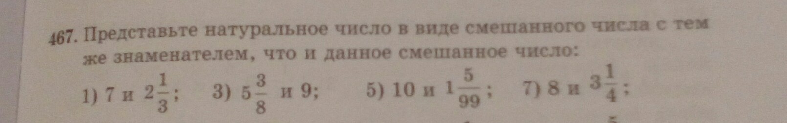 Представте натуральное чисто в виде смешоного числа с тем же занаменателем что и данное число