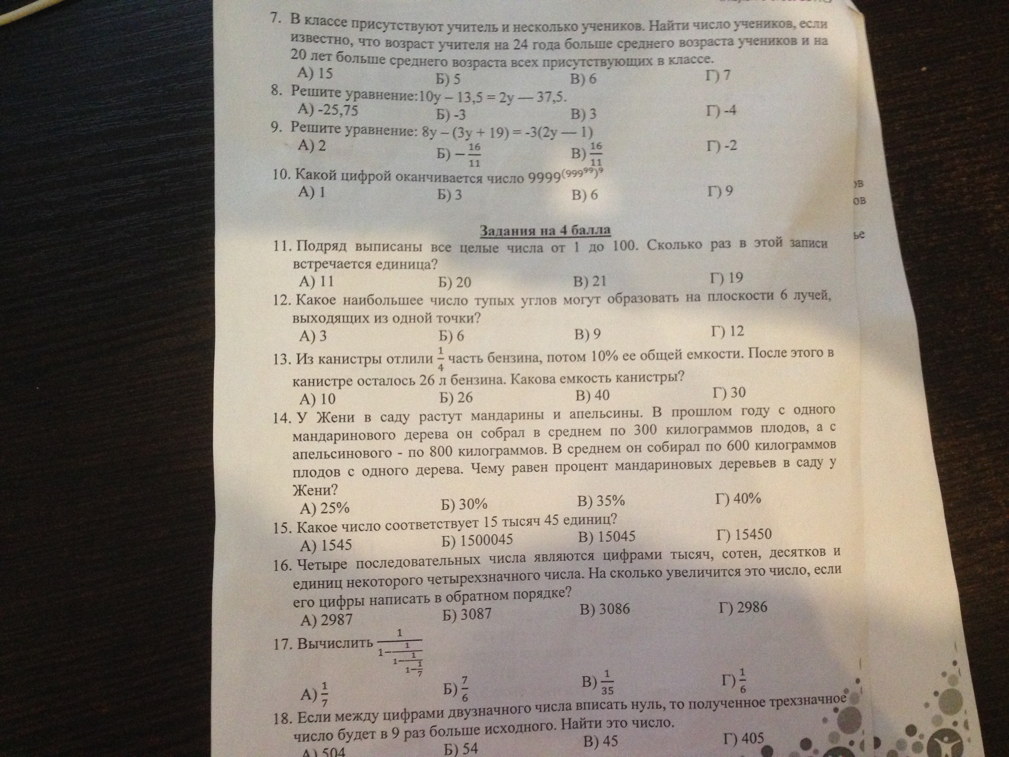 на 4 балла