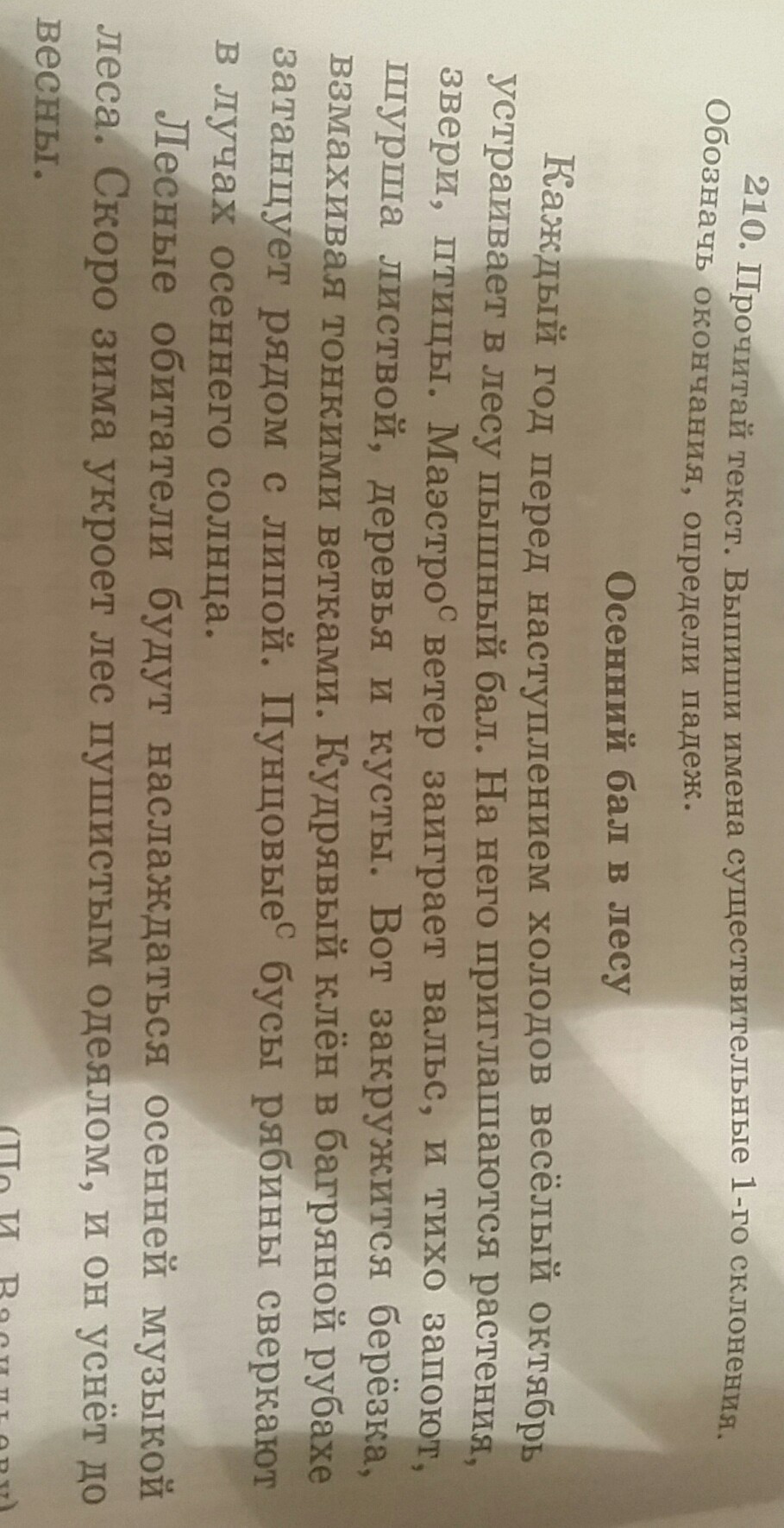 прочитай текст.выпиши имена существительные 1-ого склонения. обозначь окончания,определи падеж.