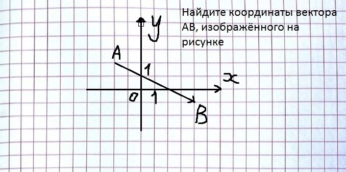 Судя по рисунку координаты точки A это (-2;2), точки B (4;-1), теперь,чтобы узнать координаты вектора AB следует из координат конечной точки вычесть координаты начальной точки, то есть AB( 4-(-2) ; -1-2 ), AB(6;-3)