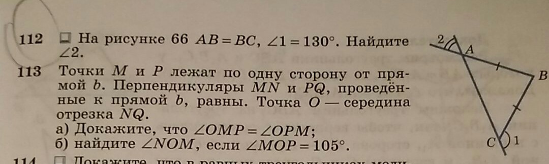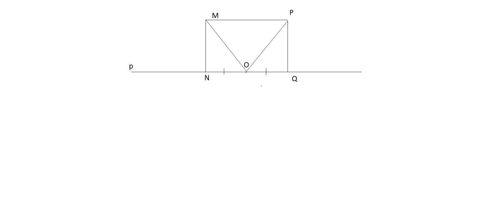 Рассмотрим два треугольника ΔNMO и ΔOPQ , они равны по первому признаку равенства треугольников, по двум сторонам и угу между ими