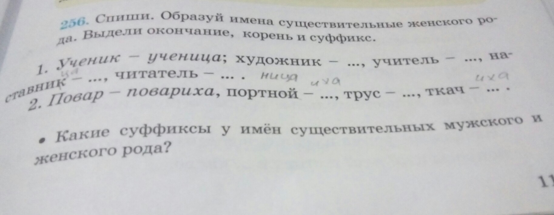 в 1 задании все слова оканчиваются на ( ца ), а во втором задании оканчиваются на ( иха )