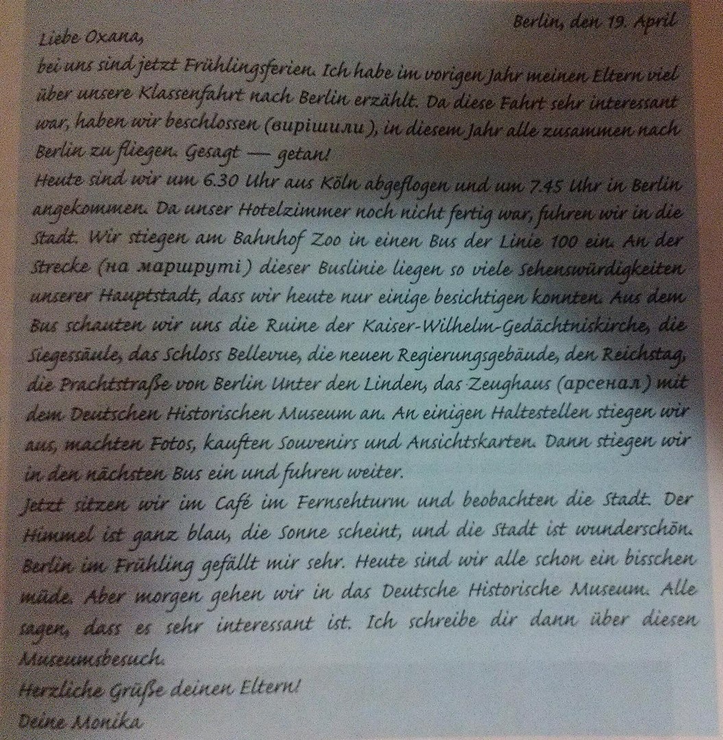 Monika hatte im vorigen Jahr eine Klassenfahrt nach Berlin.