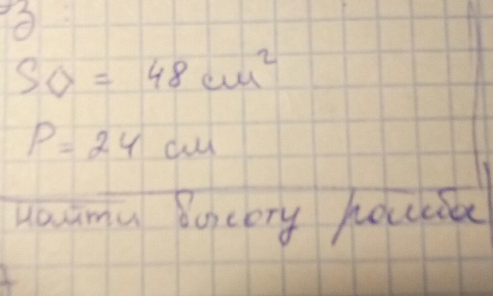 S ромба=48см² P=24см Найти высоту ромба