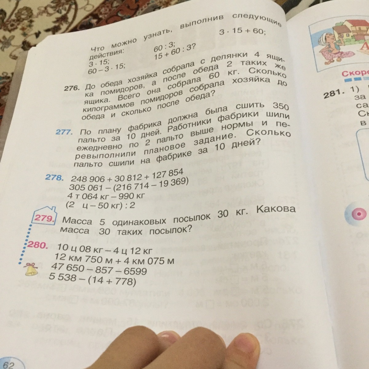 279. 30 кг : 5= 6 кг - масса одной посылки.