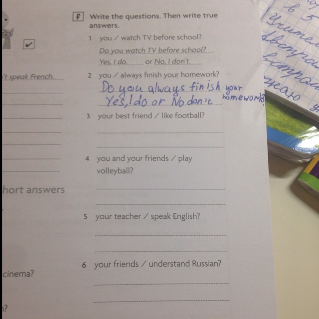 Does your best friend like football? Yes, he does/ No, he doesn't.