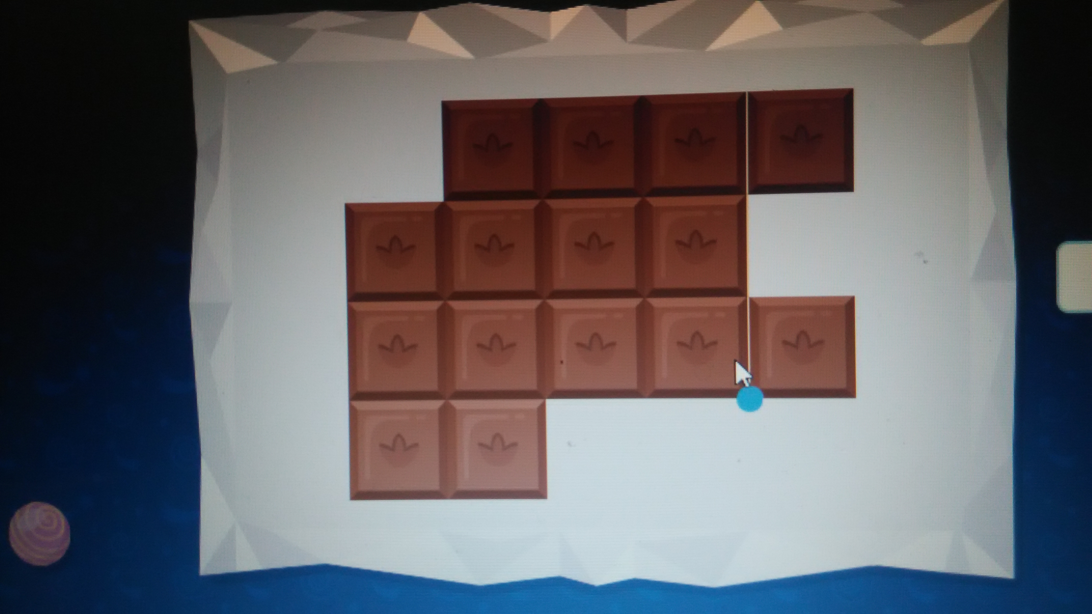 раздели шоколадку на три одинаковые по форме и размеру части