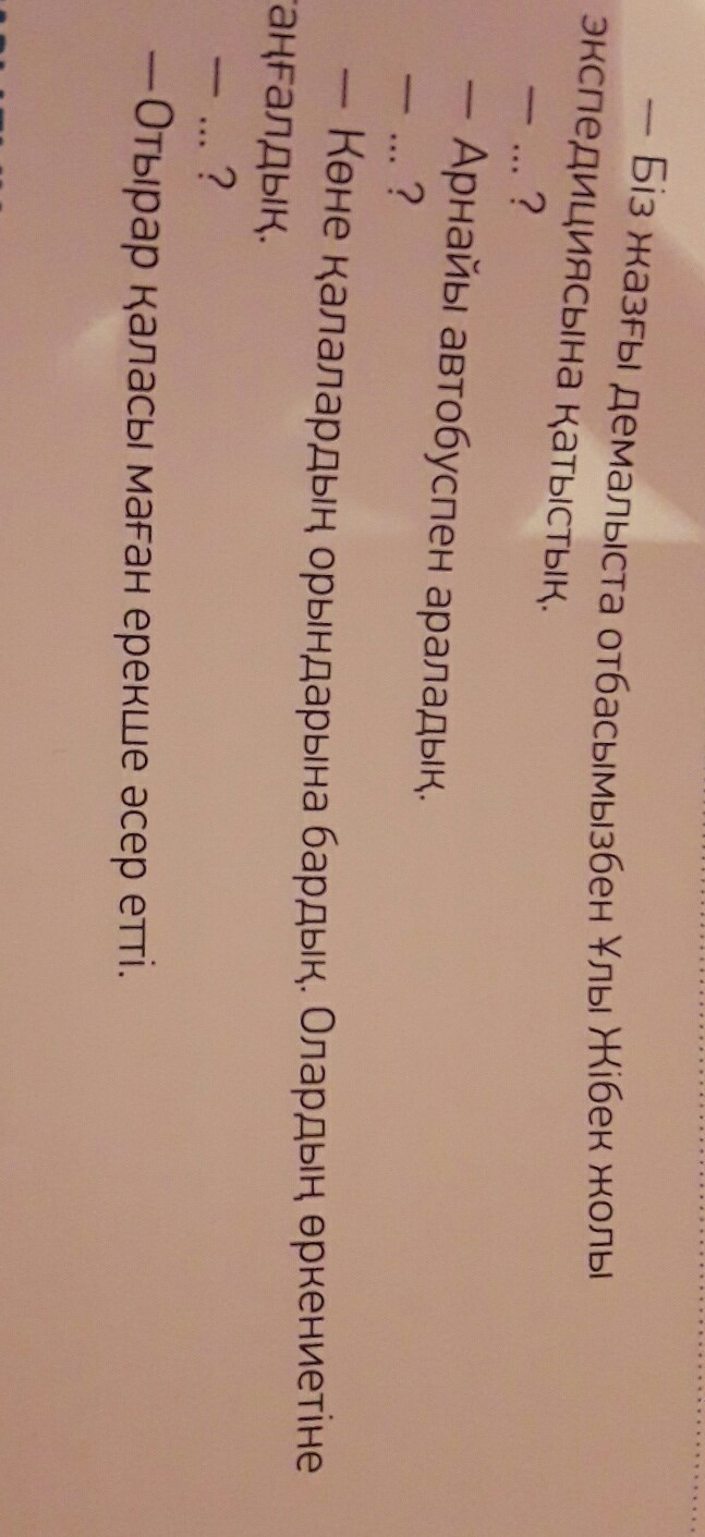 Кай жерге бардындар? Жане кандай сезымде болдындар?