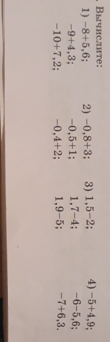 1)-8+5,6=-2,4 2)-0,8+3=2,2 3)1,5-2=-0,5 4)-5+4,9=-0,1
