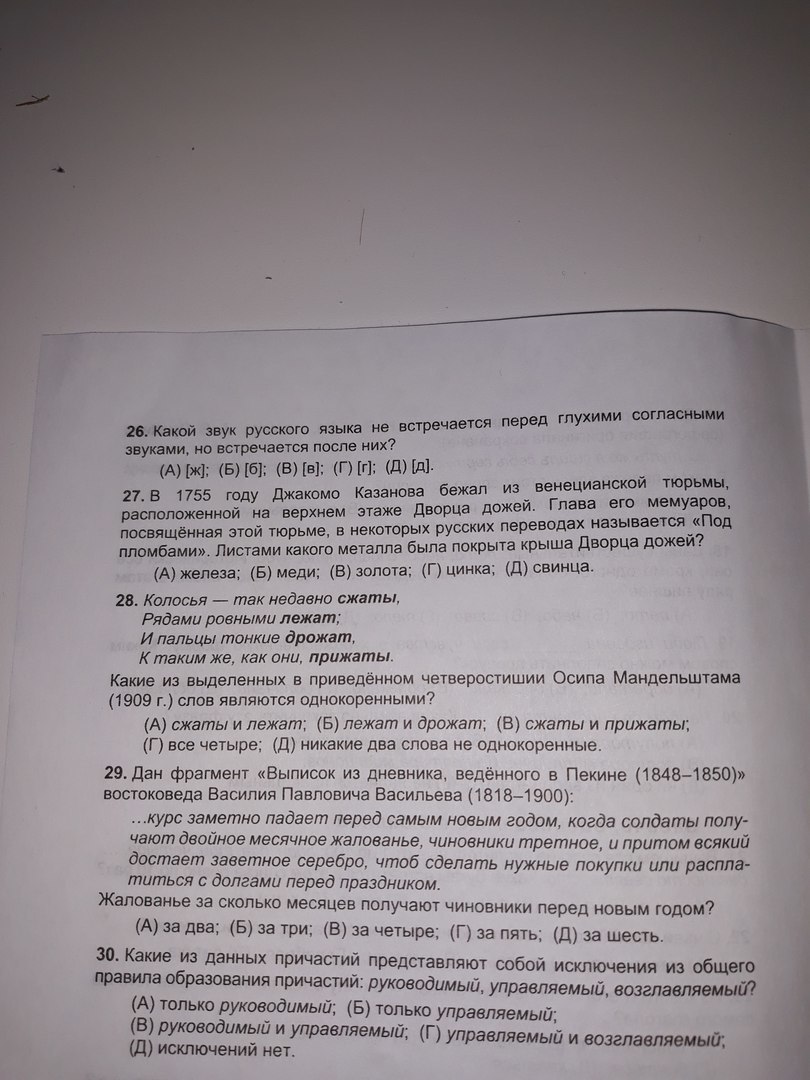 1. Г) 11.Д) 21.А)2.Д) 12.Д) 22.Б)3.Г) 13.Г) 23.Д)4.В) 14.Б) 24.А)5.Г) 15.Г) 25.Г)6.Д) 16.Д) 26. Б)7.Г) 17.Д) 27.А)8.Д) 18.А) 28.В)9.Д) 19.Г) 29.Б)10.Б) 20.А) 30.А)