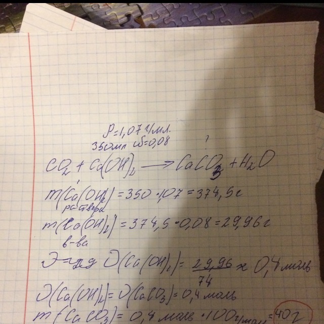 26 баллов !!!! СРОЧНО!!! Сколько граммов карбоната кальция выпадет в осадок при пропускании углекислого газа через 350мл 8-% раствора гидроксида кальция плотност 1,07гмл