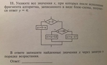 укажите все значения x при которых после исполнения фрагмента алгоритма записанного в виде блок-схемы получится ответ y=4