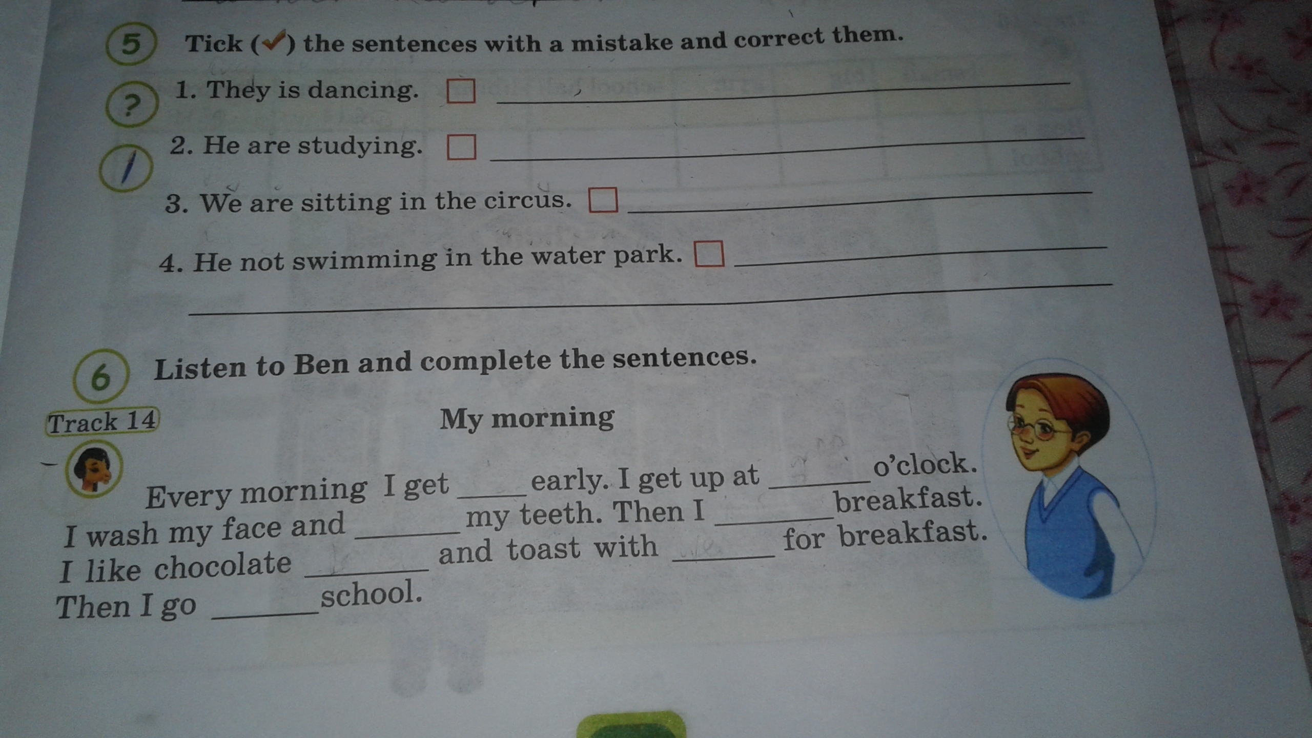 4 - неверно he is not swimming//////