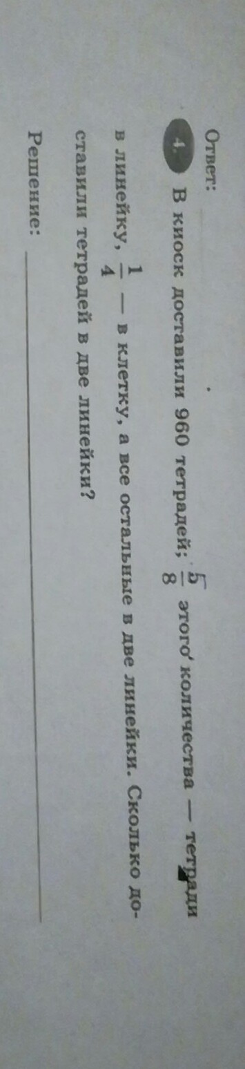 1) 5/8 + 1/ 4 = 5/8 + 2/8 = 7/8 в линейку + в клетку