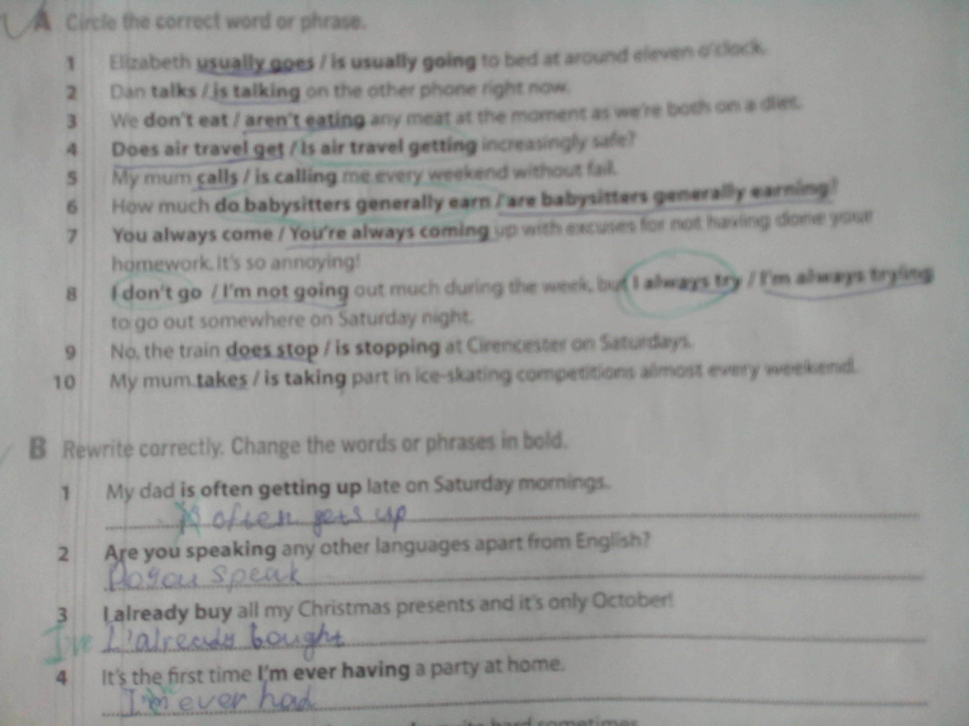 1. usually goes (потому что не может быть is usually going ведь usually в переводе означает обычно , а is going употребляется когда говоришь что делаешь сейчас)