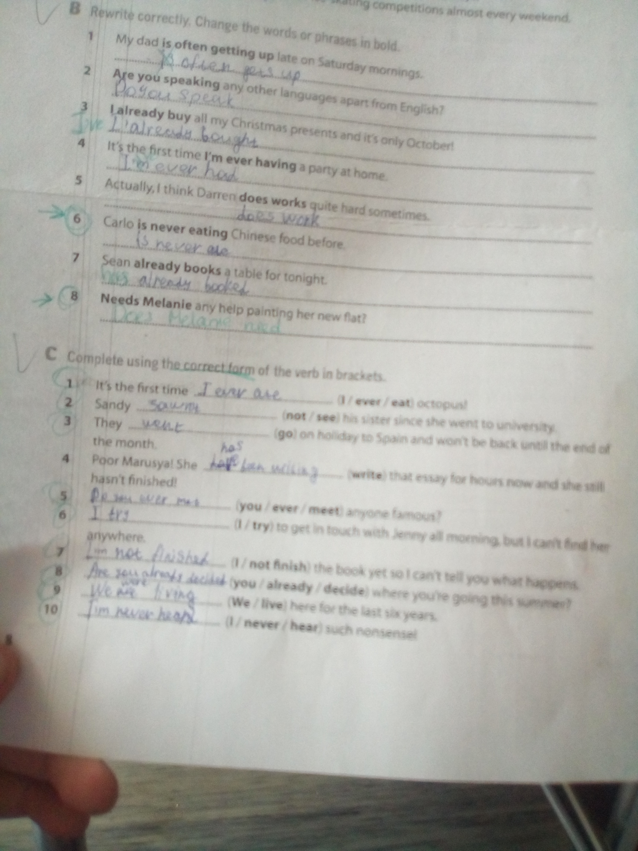 5. calls (потому употребляется every weekend , что означает каждую неделю)