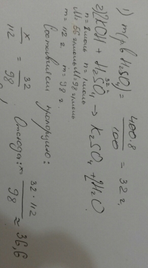 сколько граммов гидроксида калия необходимое для нейтрализации 400 г раствора серной кислоты с массовой долей кислоты 8%