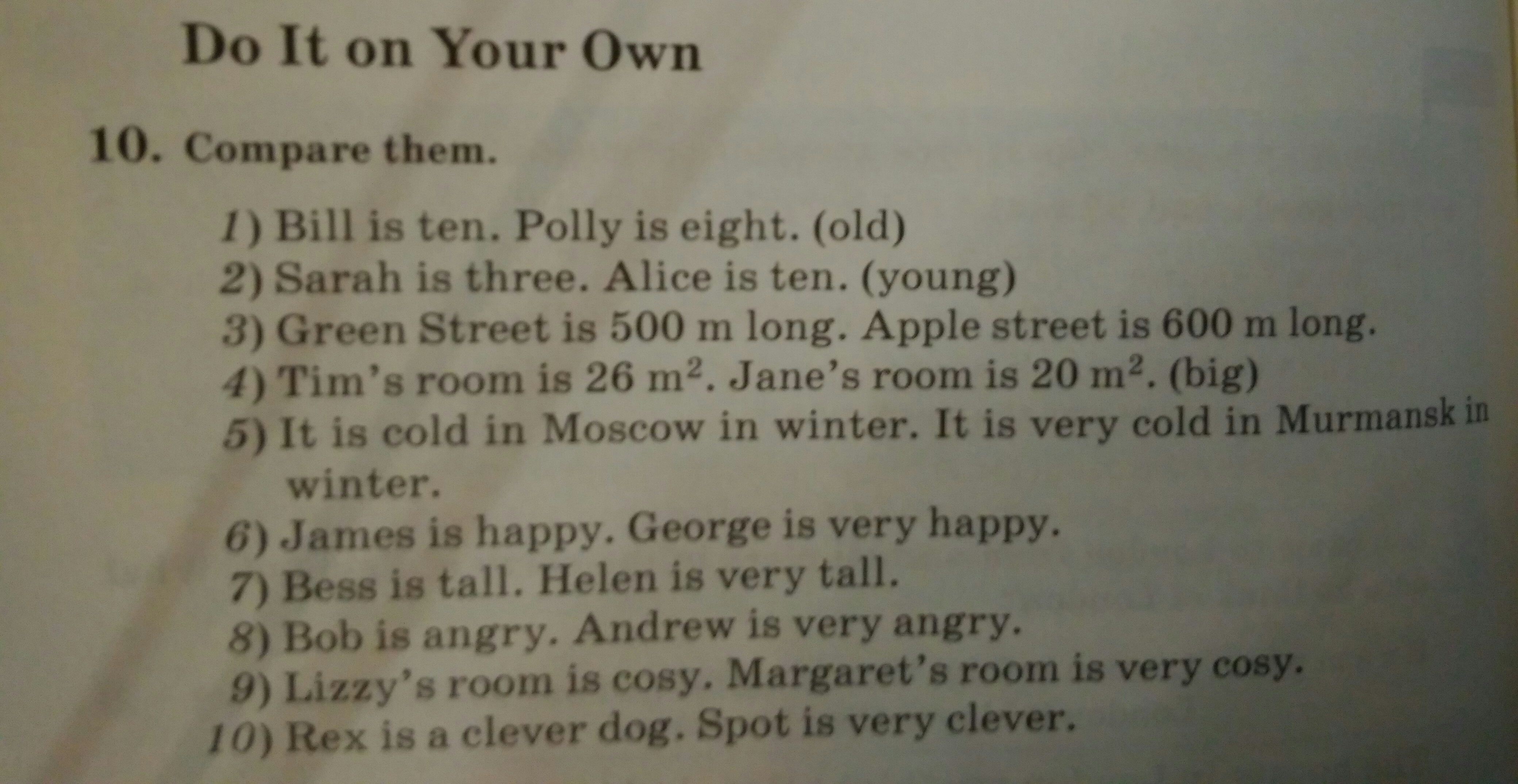 1) Bill is ten. Polly is eight значит получается Bill is older than Polly ( Билл старше Полли)