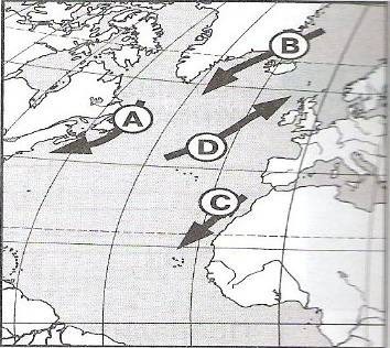 Теплое течение обозначается буквой С