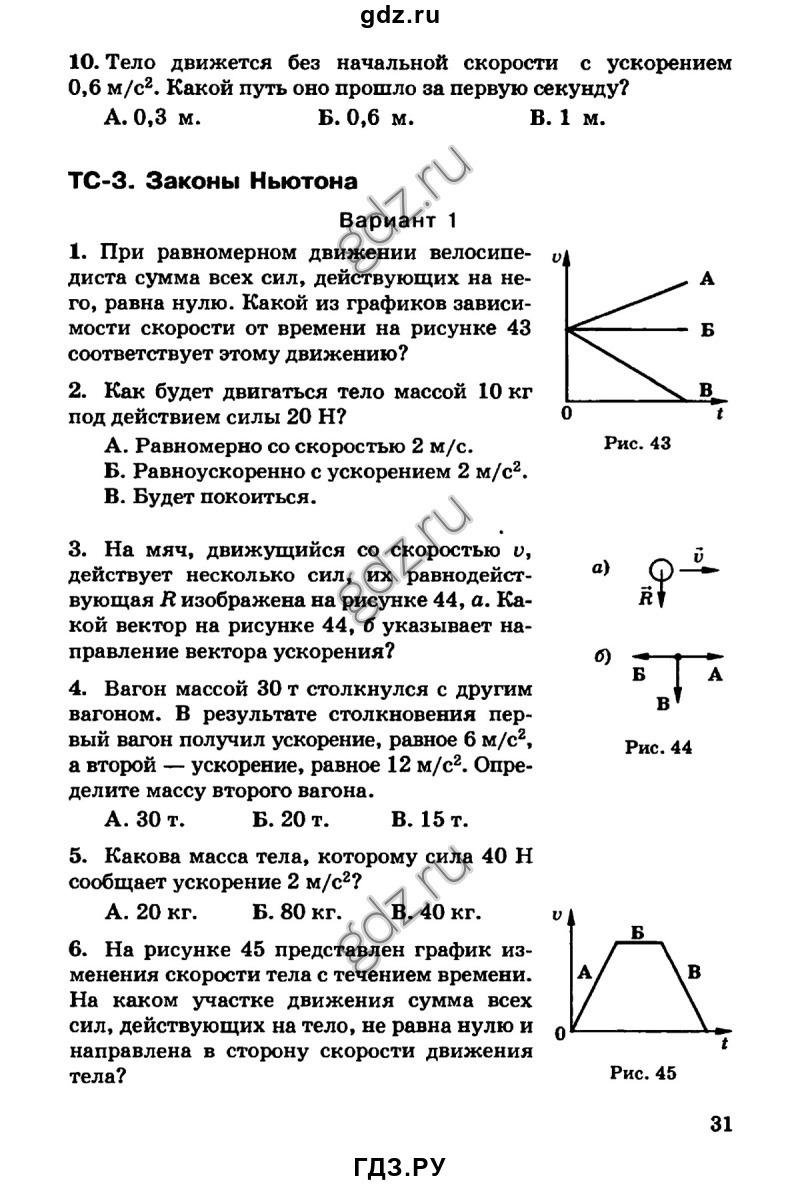 Помогите пожалуйста. закон ньютона , вариант 1, задания с 1 по 10 выбрать правильный ответ.