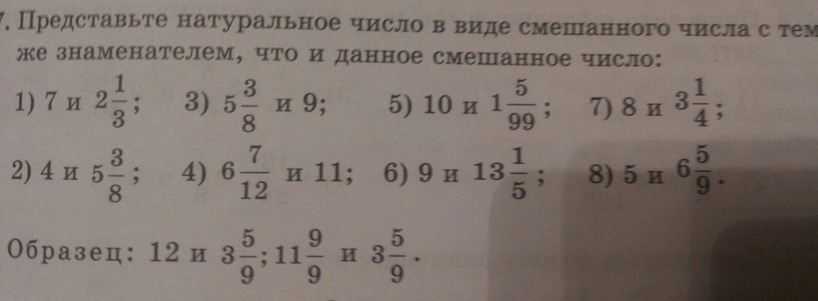 1) 7 и 2 1/3; 6 3/3 и 2 1/3