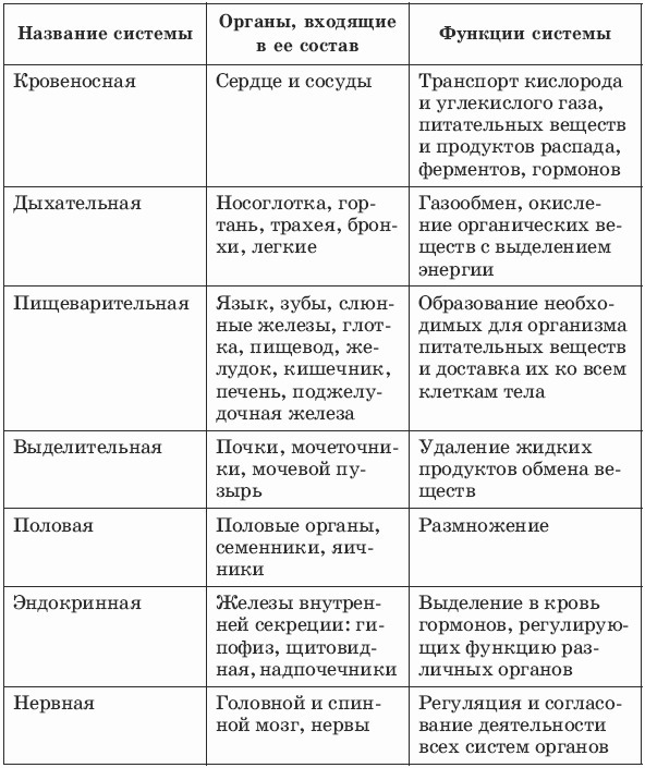 Полная таблица систем и состава