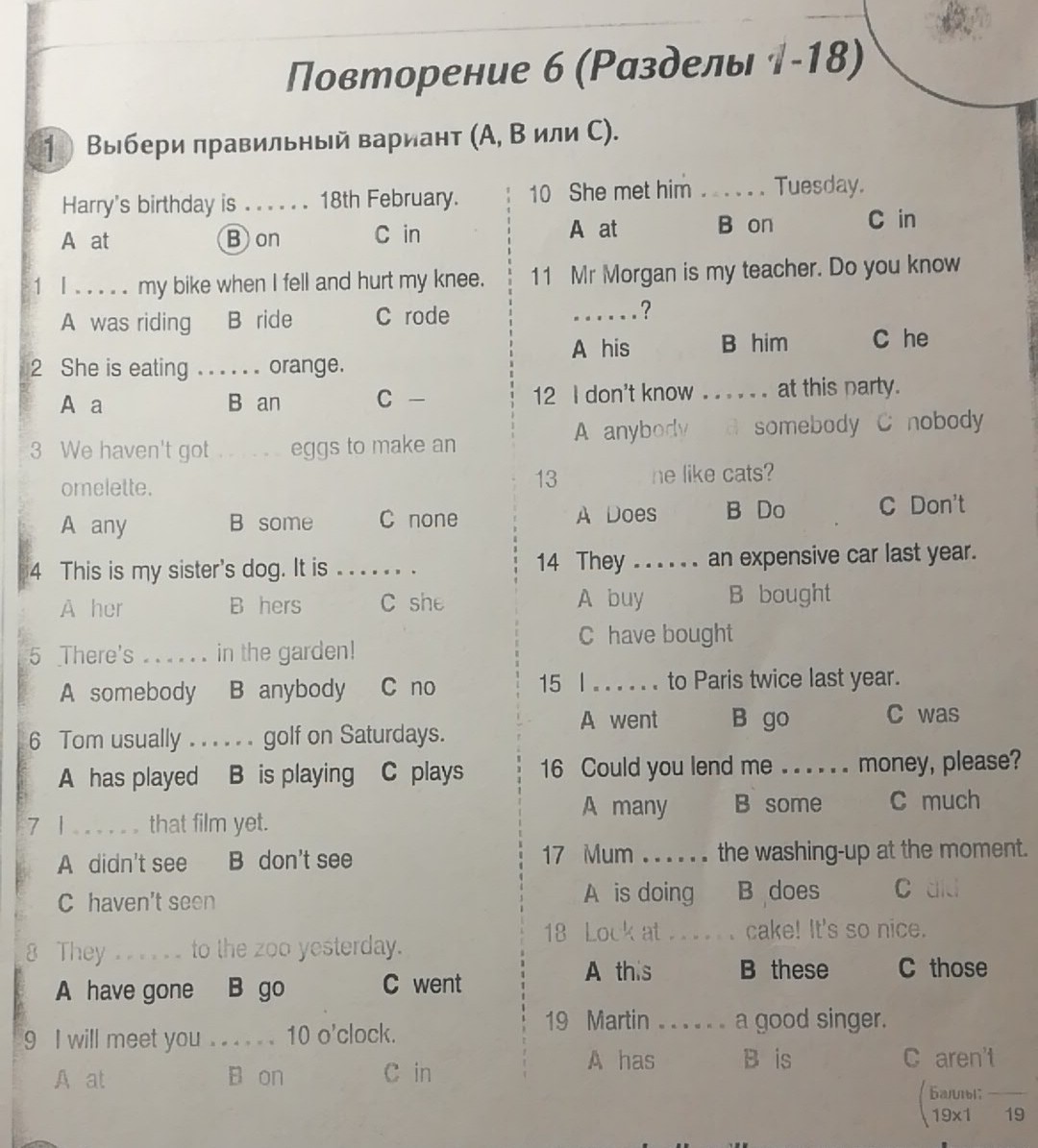 11B 12A 13A 14B 15A 16B 17A 18A 19B