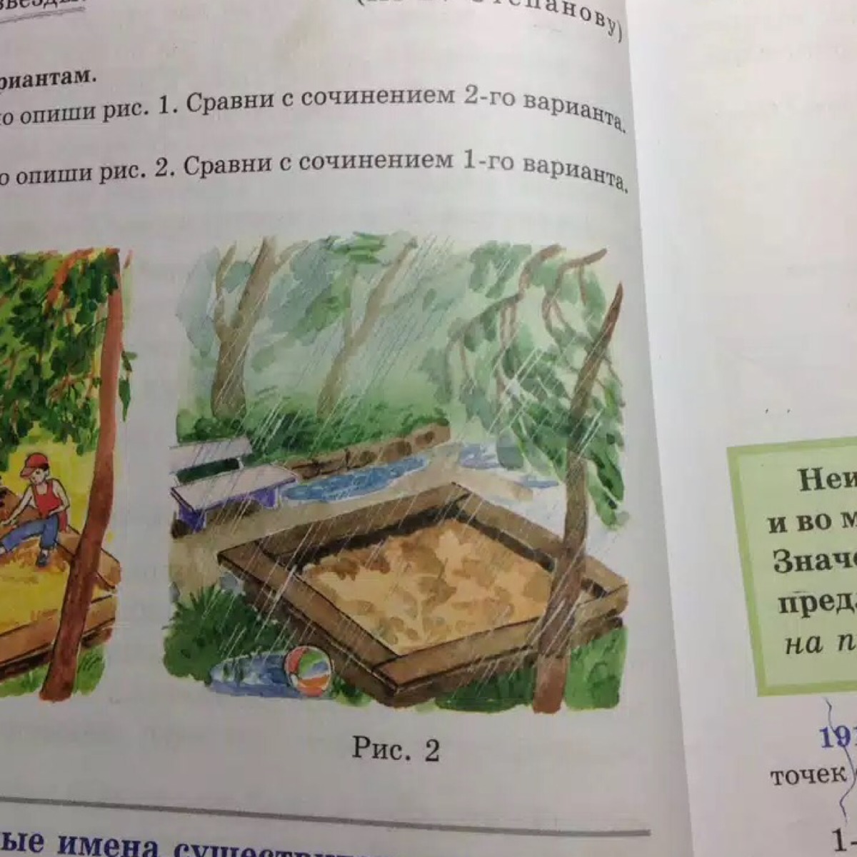 погода пасмурная на улице писочница,мяч,скамейка сильный ветер качает деревья везде большие лужи песочница мокрая на половину сухая на улице никого нет .