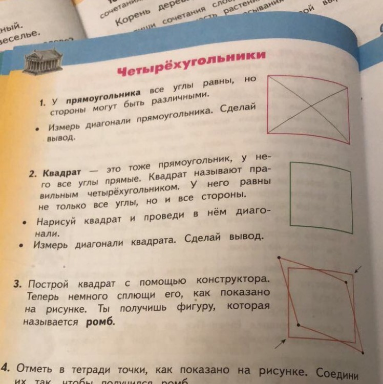 диагонали квадрата равны, перпендикулярны и точкой пересечения делятся пополам