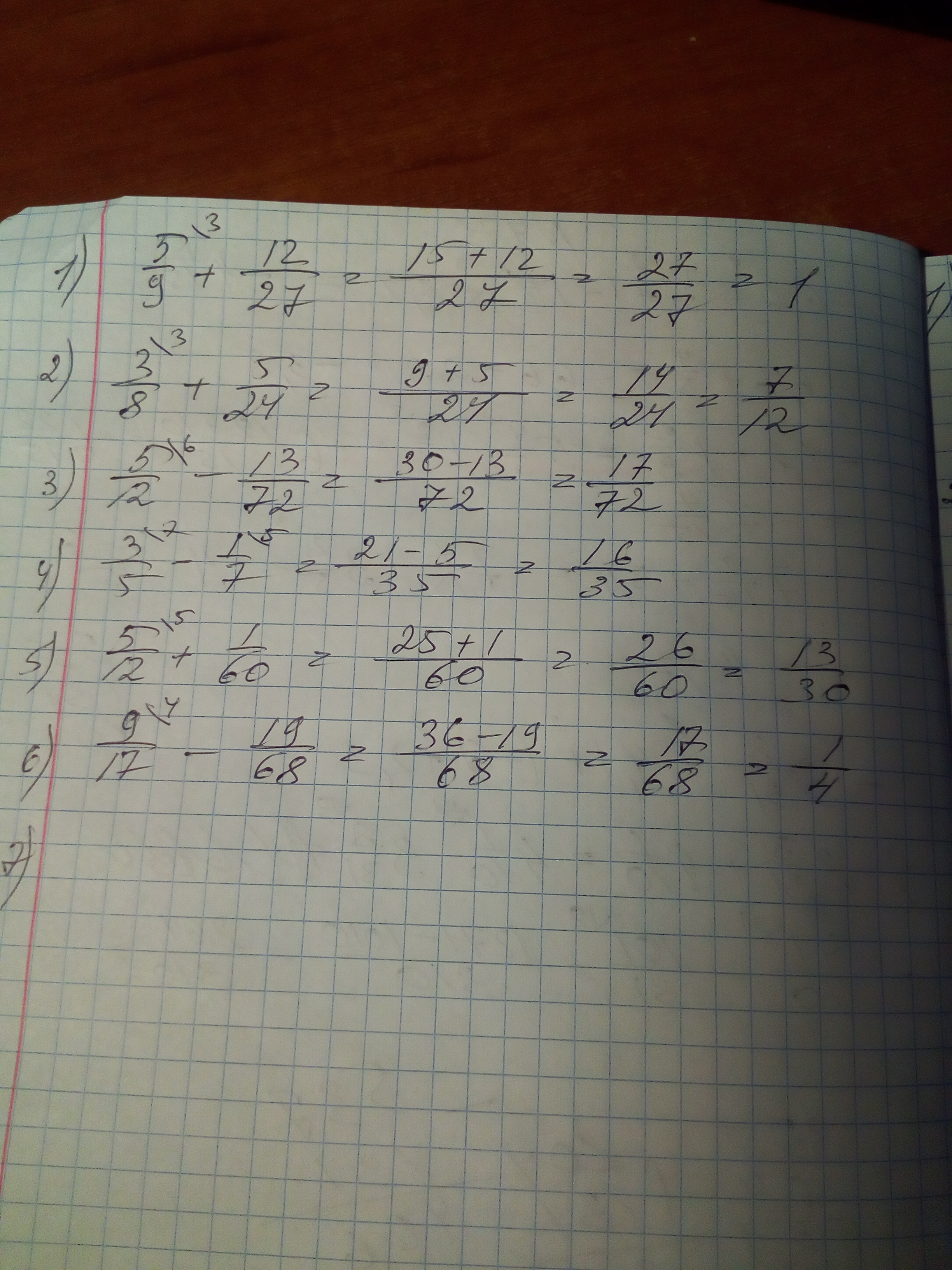 4)3/5-1/7=21/35-5/35=16/35