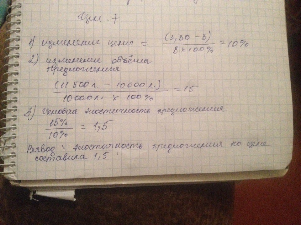 Цена товара X выросла с 3 до 3,30, а объем увеличился с 10 до 11,5. Определить ценовую эластичность предложения.