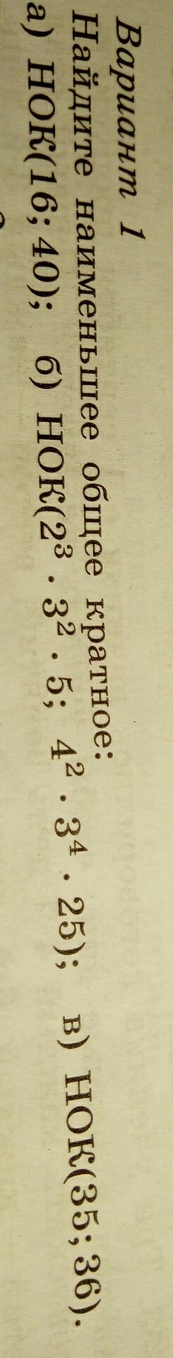 а)40 = 2 · 2 · 2 · 516 = 2 · 2 · 2 · 2НОК (16; 40) = 2 · 2 · 2 · 5 · 2 = 80
