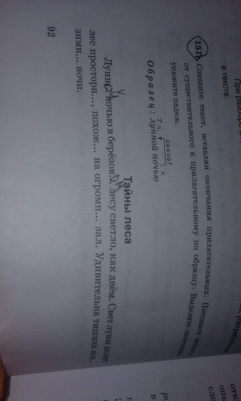 Свет луны делает лес просторнЕЕ , похожИМ на огромнЫЙ зал.