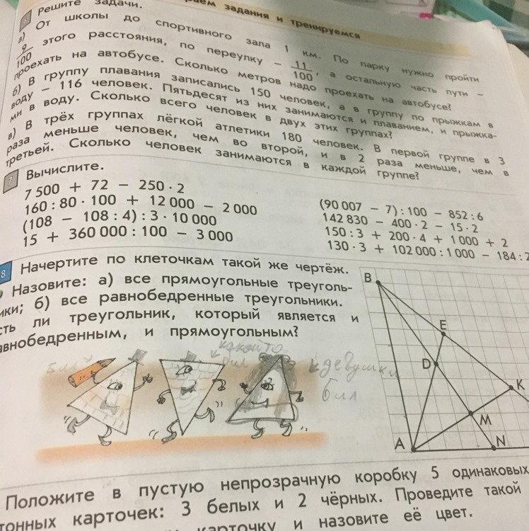 7 500+72 - 250*2=7072 ; 160:80*100+12 000-2000=10200 ; (108 - 108 : 4) : 3*10 000=270000 ; 15 + 360 000 : 100 - 3 000=615 ; это первый столбик второй думаю кто-то решит, удачи в школе!