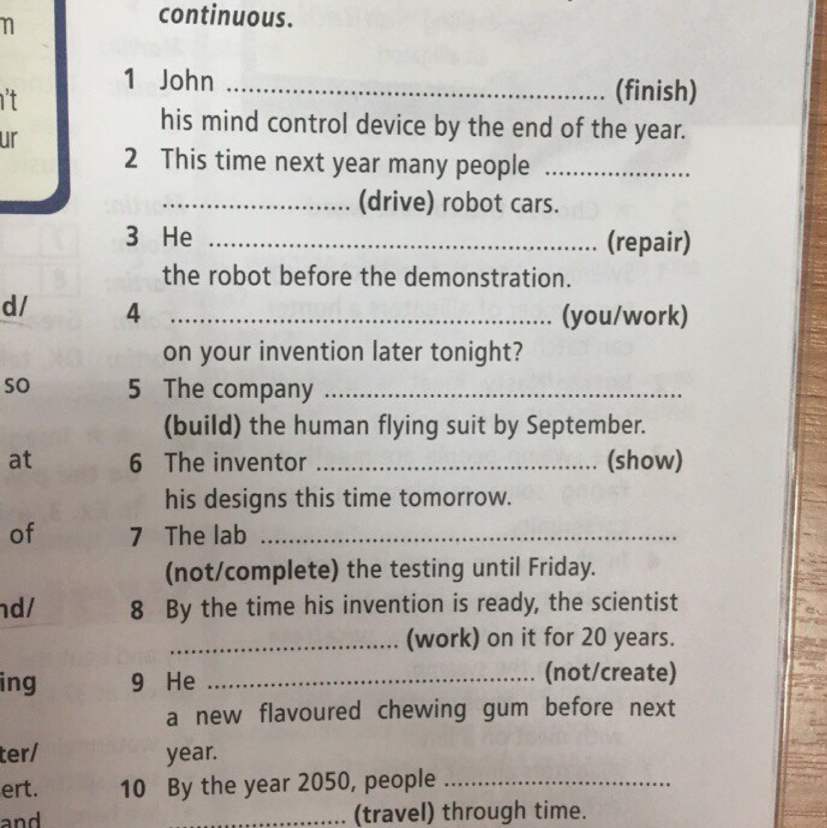 1.finished.2.will drive.3.will repair. 4.you worked.6.will show.7.not completed.10.traveled.9.not will create