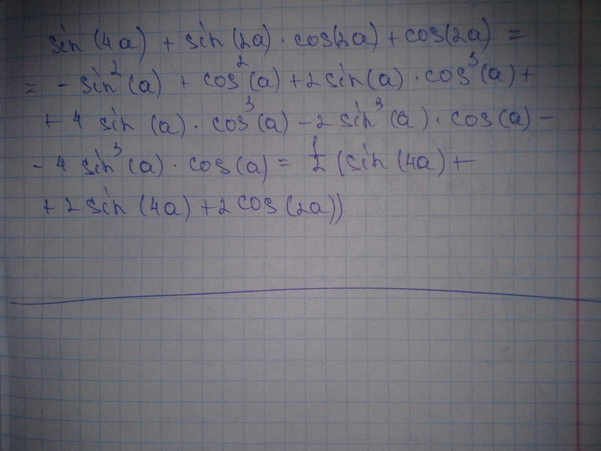 (cos^2(a) - sin^2(a))*(6sina*cosa + 1) = 6sina*cos^3(a) + cos^2(a) - 6cosa*sin^2(a) - sin^2(a) **