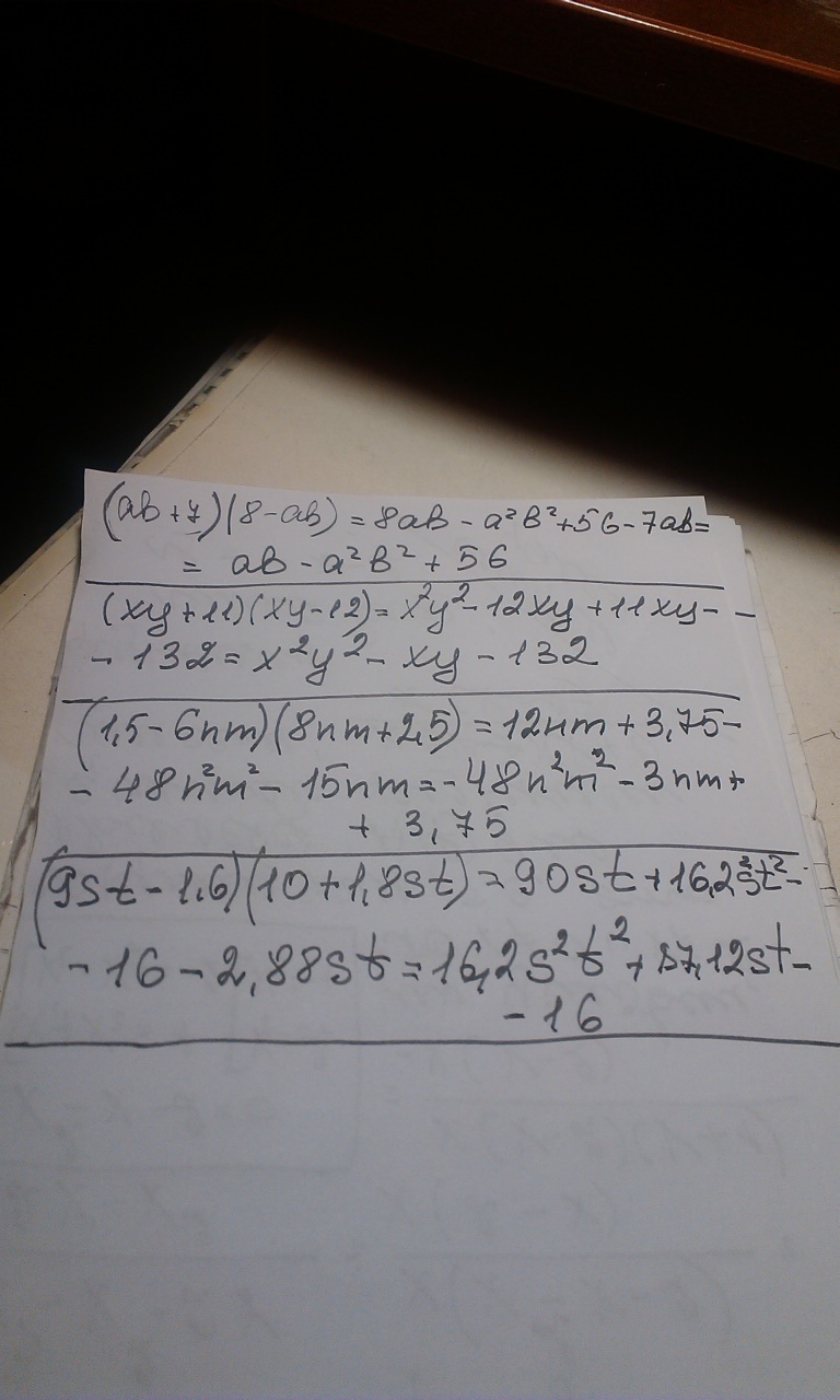 Как вы в 8ab-a^2b^2+56-7ab=ab-a^2b^2 +56 получили? Я имею ввиду как убрали 7ab