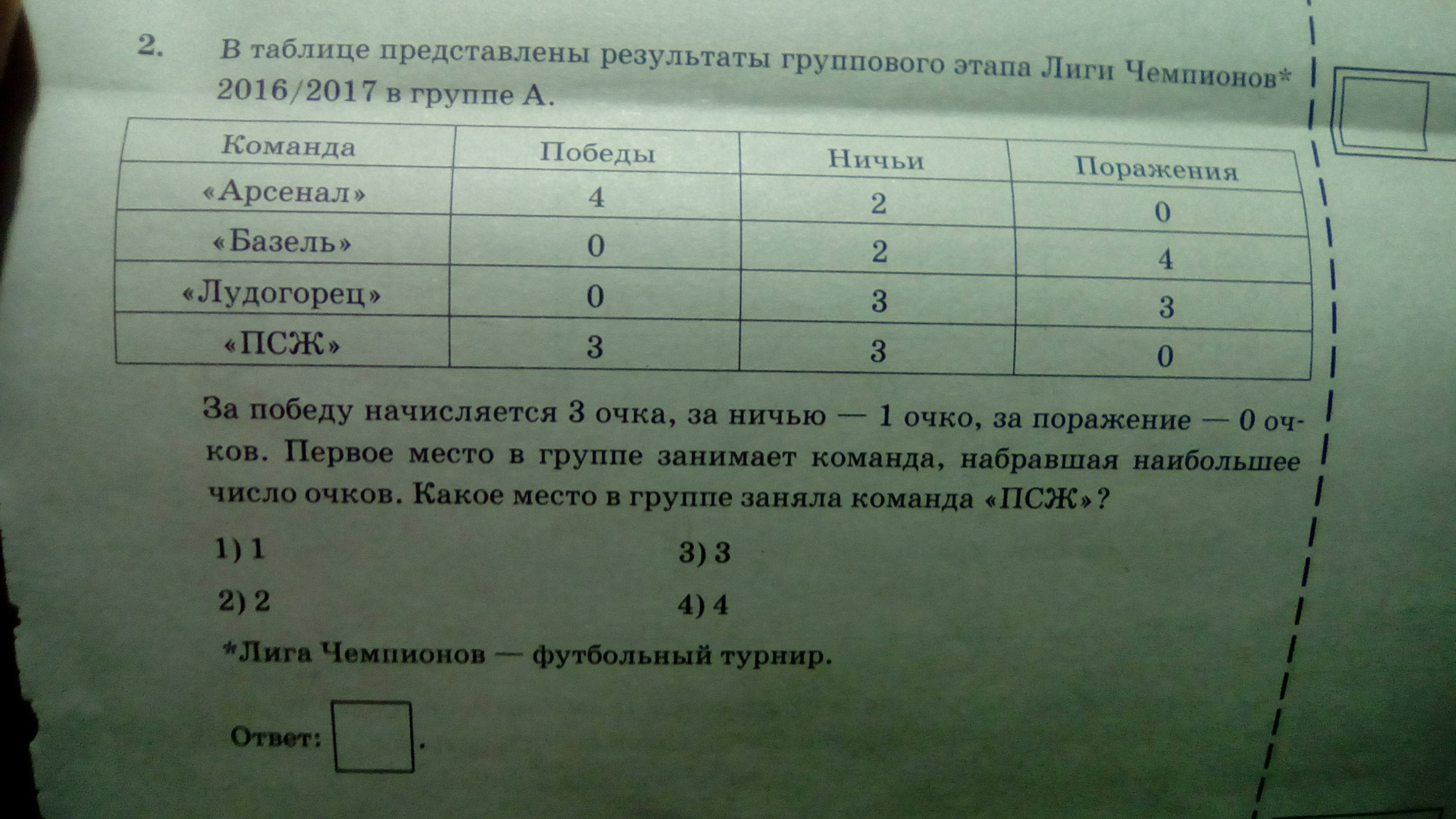 1 место- команда "Арсенал", а команда "ПСЖ"-2 место