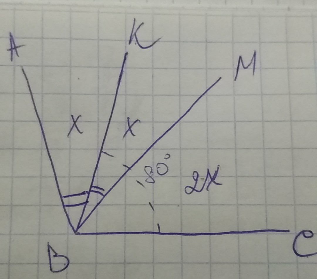Т.к. ВК биссектриса АВМ то АВК=КВМ=х