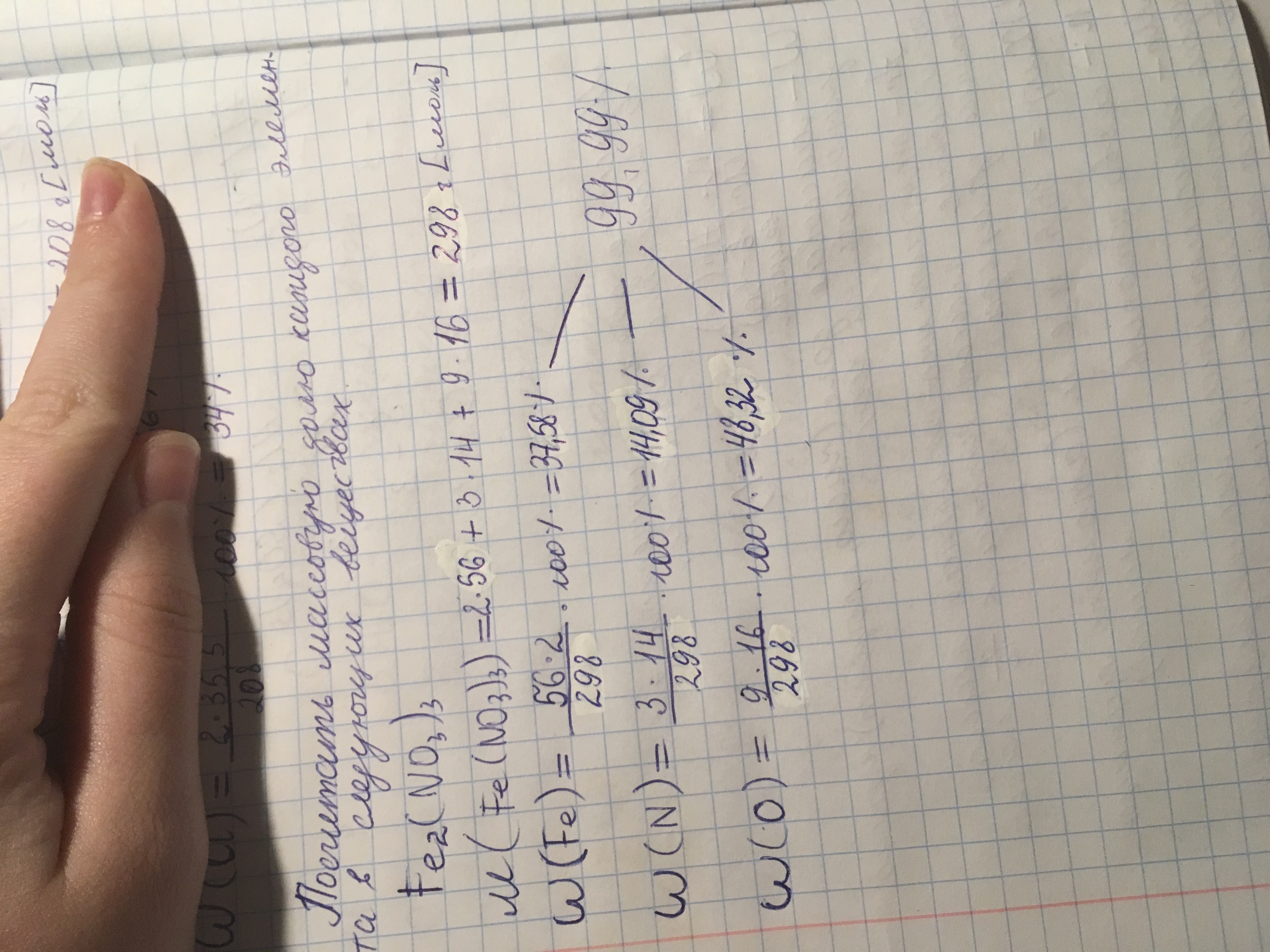 вначале ошибка в формуле нитрата железа(ІІІ) Fe(NO3)3, а потом ошибка в расчете массовой доле железа и относительной молекулярной массе вещества: