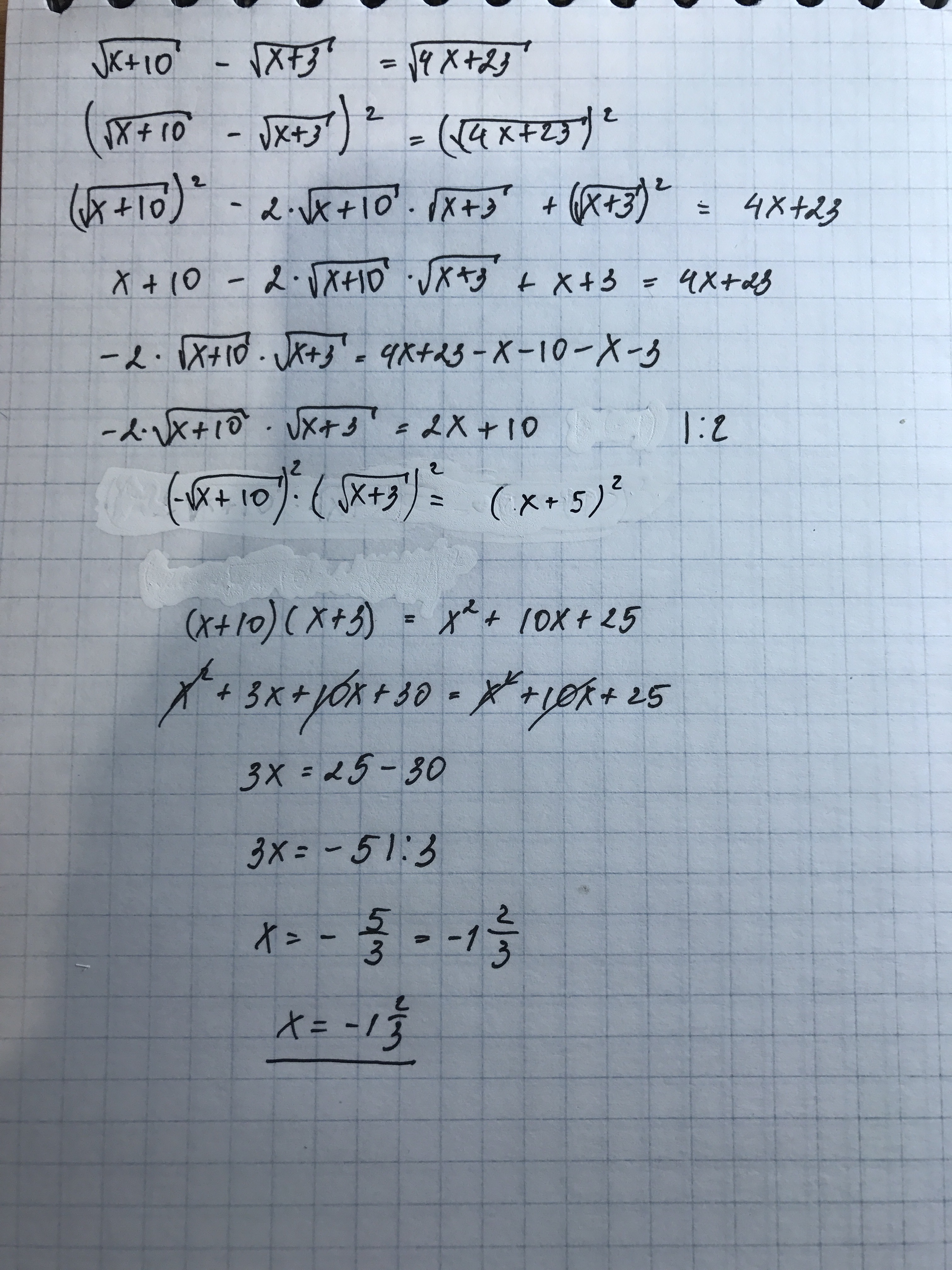 Х+10+х+3-4х-23=-2 корень из х^+13х+30;