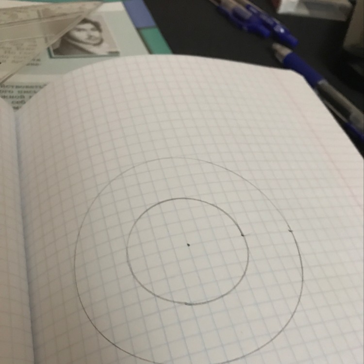 Навести окружность с радиусом длиной 2 см .Навести другую окружность с тем же центром и радиусом длиной 4 см.